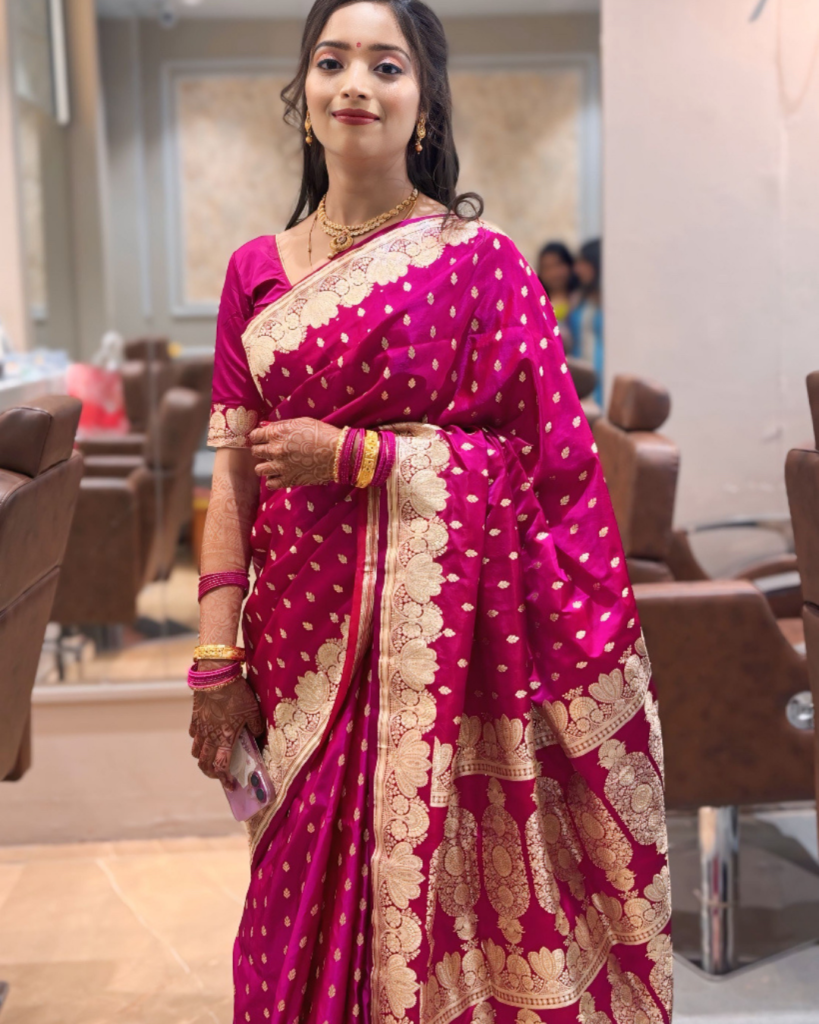 Fresh, radiant, and lightweight glam perfect for daytime celebrations. Dewy skin, soft eyes, and a natural glow that complements your vibrant haldi and mehendi look beautifully.